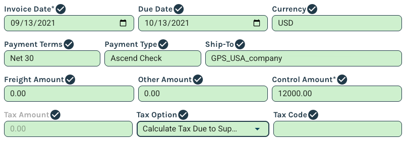 The Use Previous Lines and Code From Last Invoice features now take into account the Tax Option selected on the last invoice. When a non-PO invoice is sent to Ascend AP and is set to code from the last invoice, or you select Use Previous Lines, Ascend AP will enter the untaxed line values from the current invoice and then apply the Tax Option from the previous matching invoice. The new tax rate will automatically be calculated, and the invoice will be balanced based on line item proportions from the last invoice.